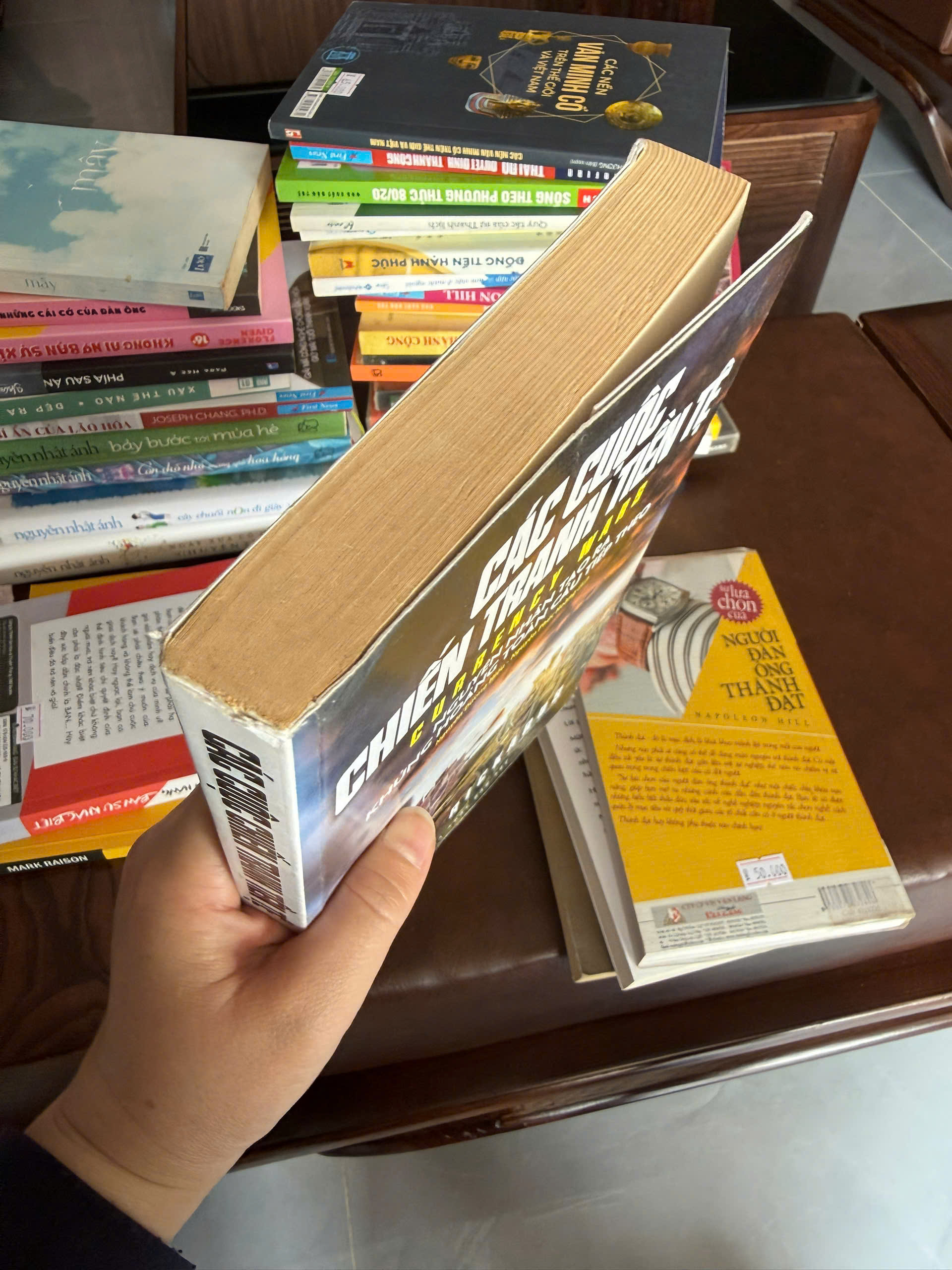 - Cạnh sách hơi ố vàng theo thời gian