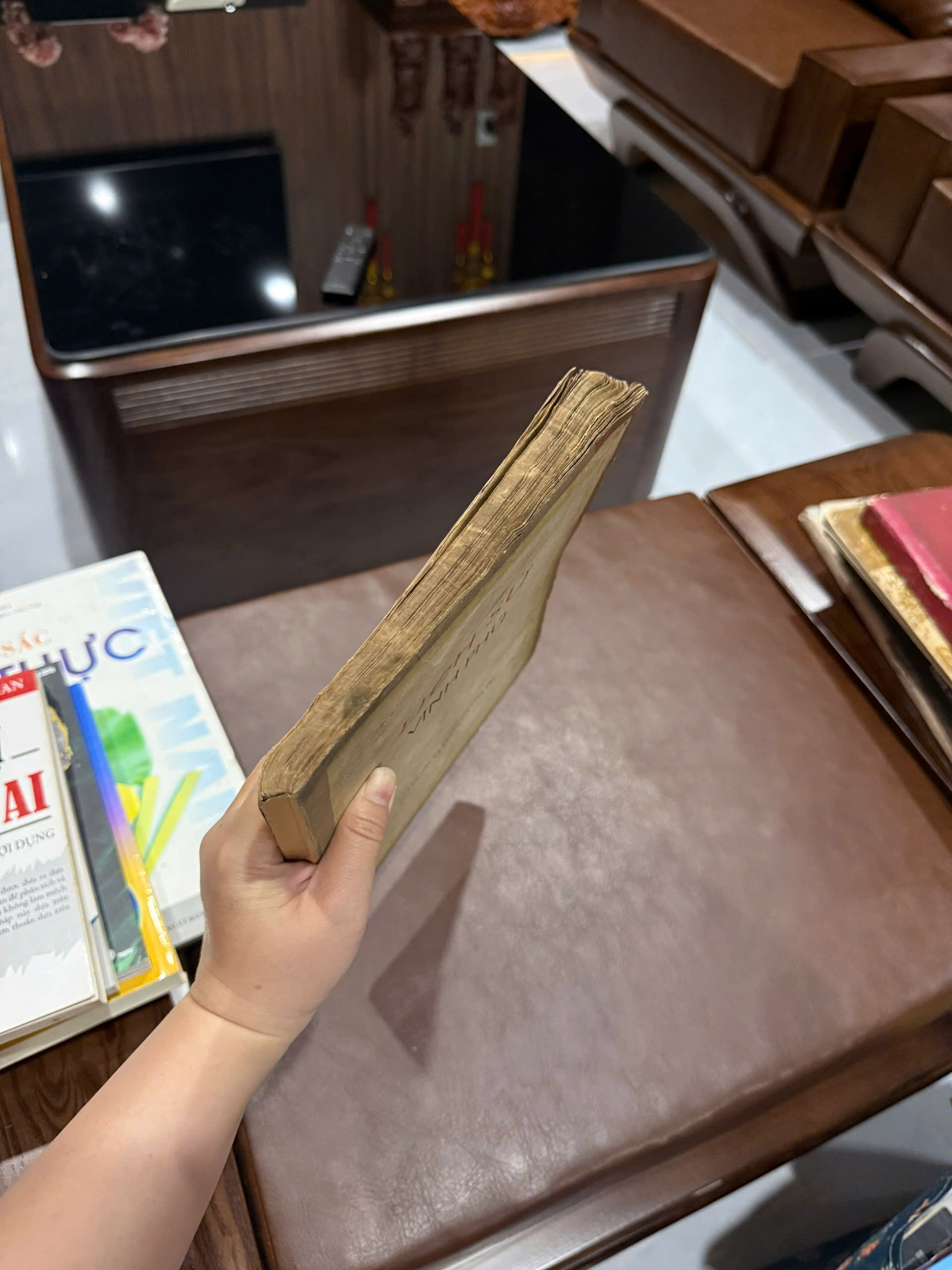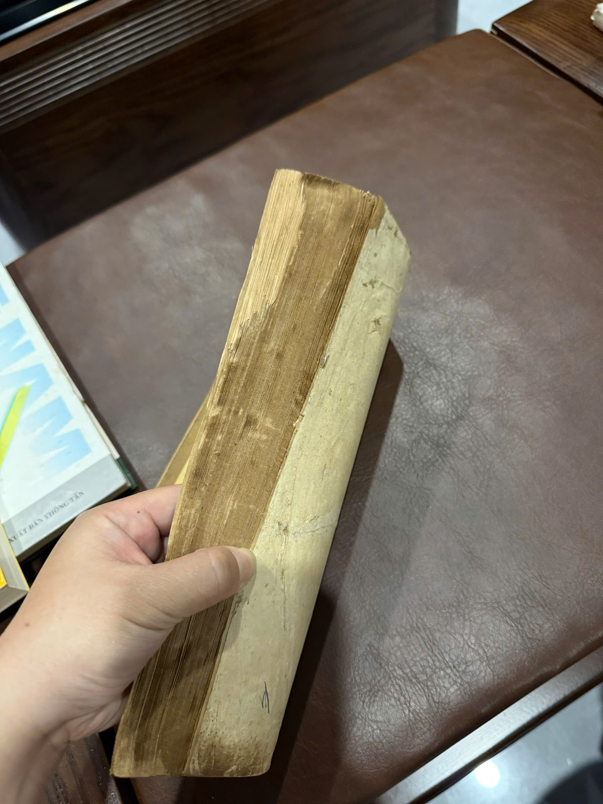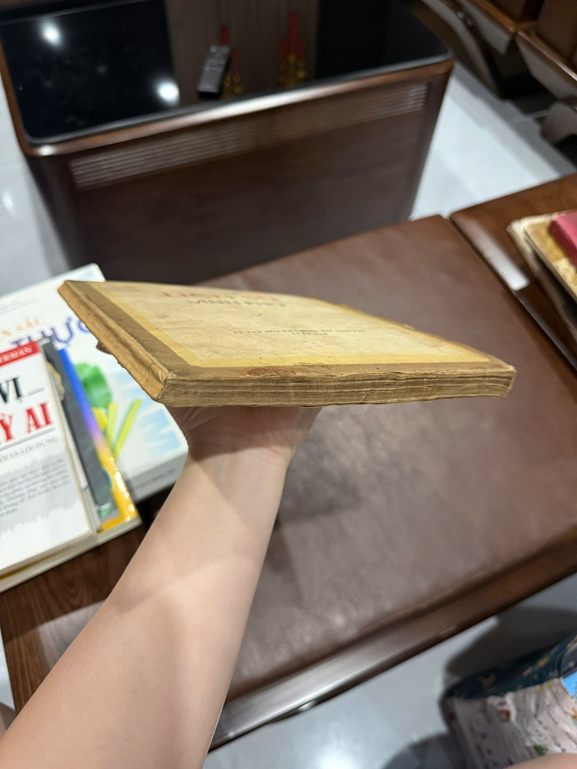 - Sách cũ, giấy vàng đậm theo thời gian