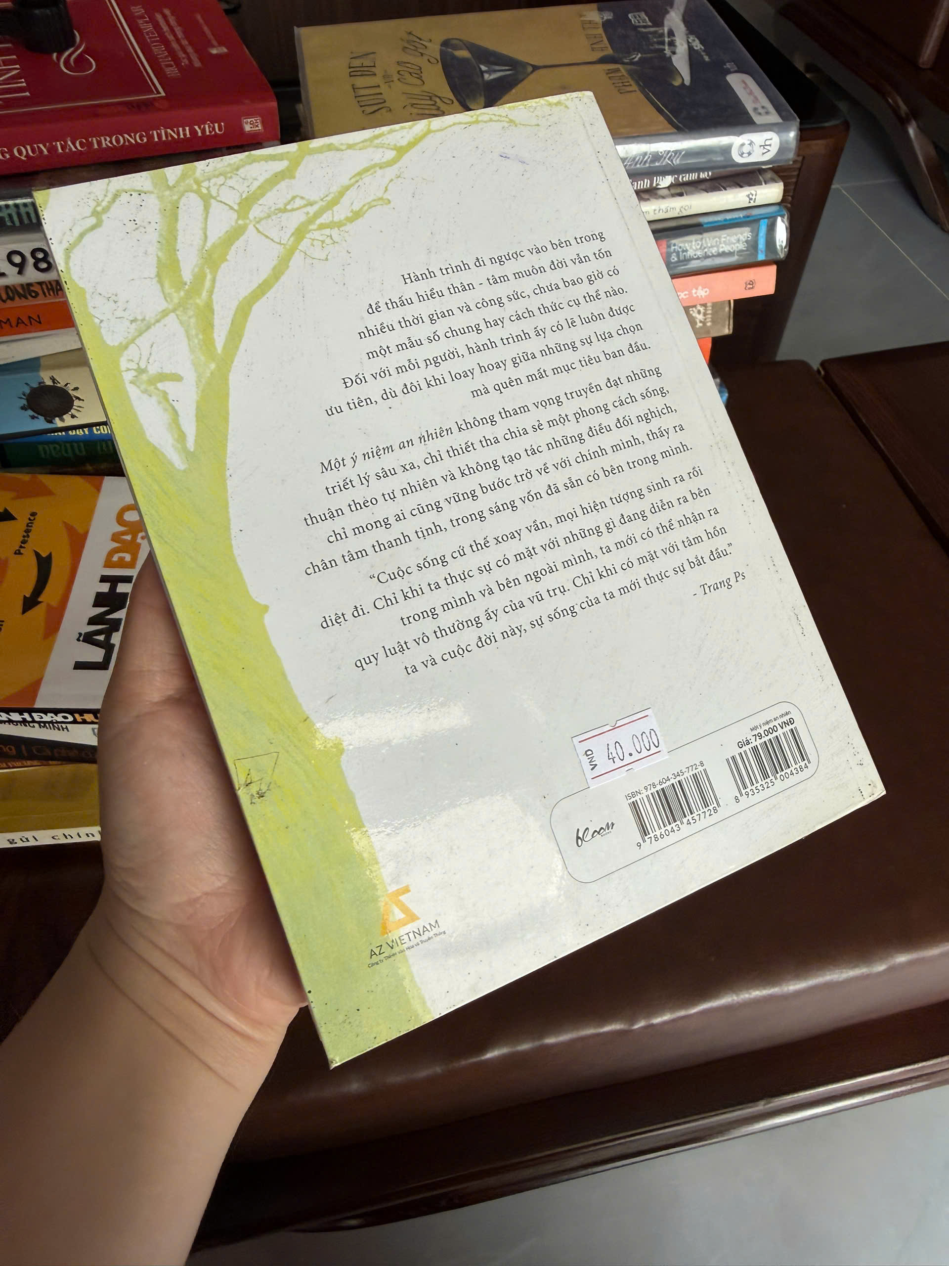 - “Một ý niệm an nhiên” không phải sách quá hiếm nhưng bản in cũ (đời đầu của Bloom Collection) hiện không còn phổ biến trên thị trường.